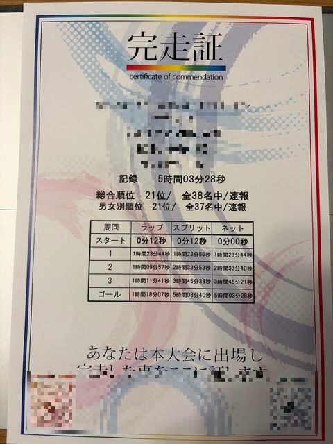 グロスタイム5時間03分28秒