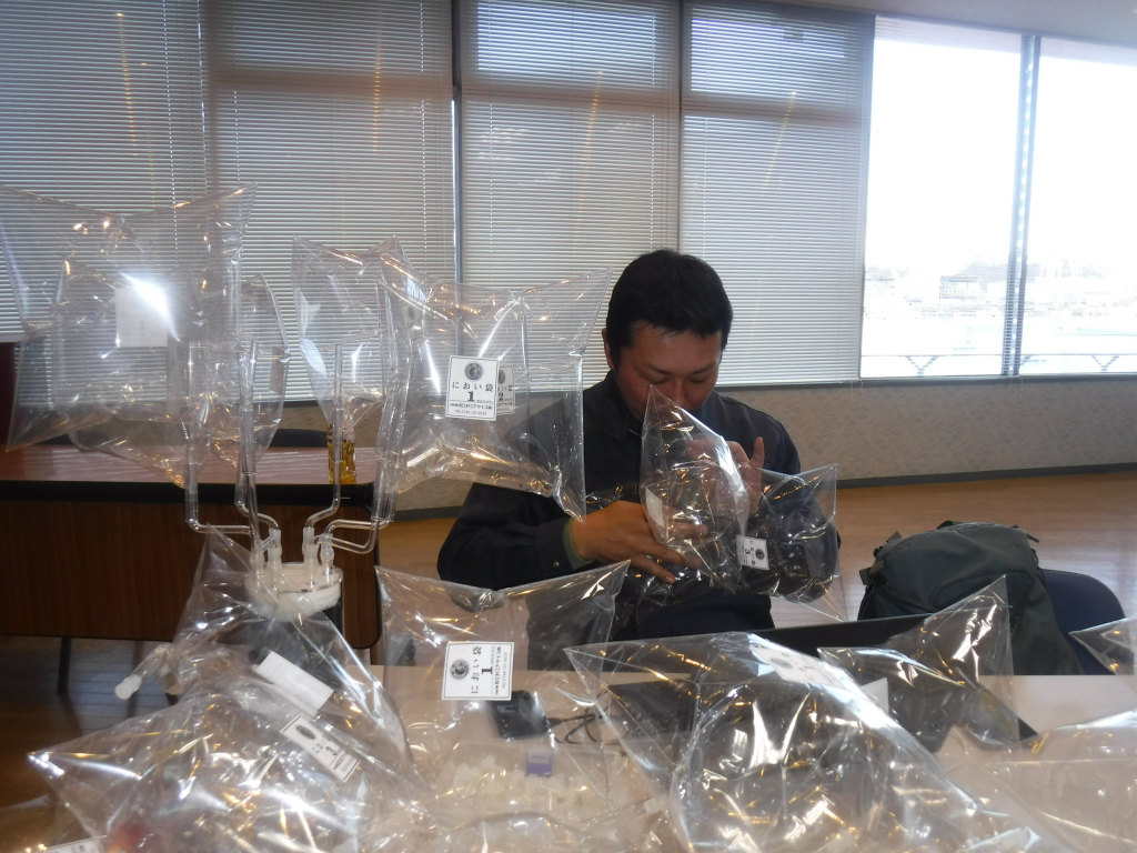 お部屋をお借りする事ができない場合やお借りした部屋が臭いが強く、臭気測定に適さない場合もございます。その際は、会社に持って帰り、臭気測定を行う事もありますし、近くの貸会議室や公民館などをお借りし、測定する事もあります。