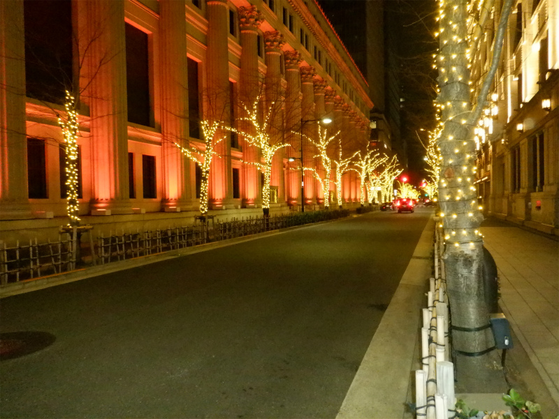 東京駅から会社に向かって歩いていた時にイルミネーションを見ました。